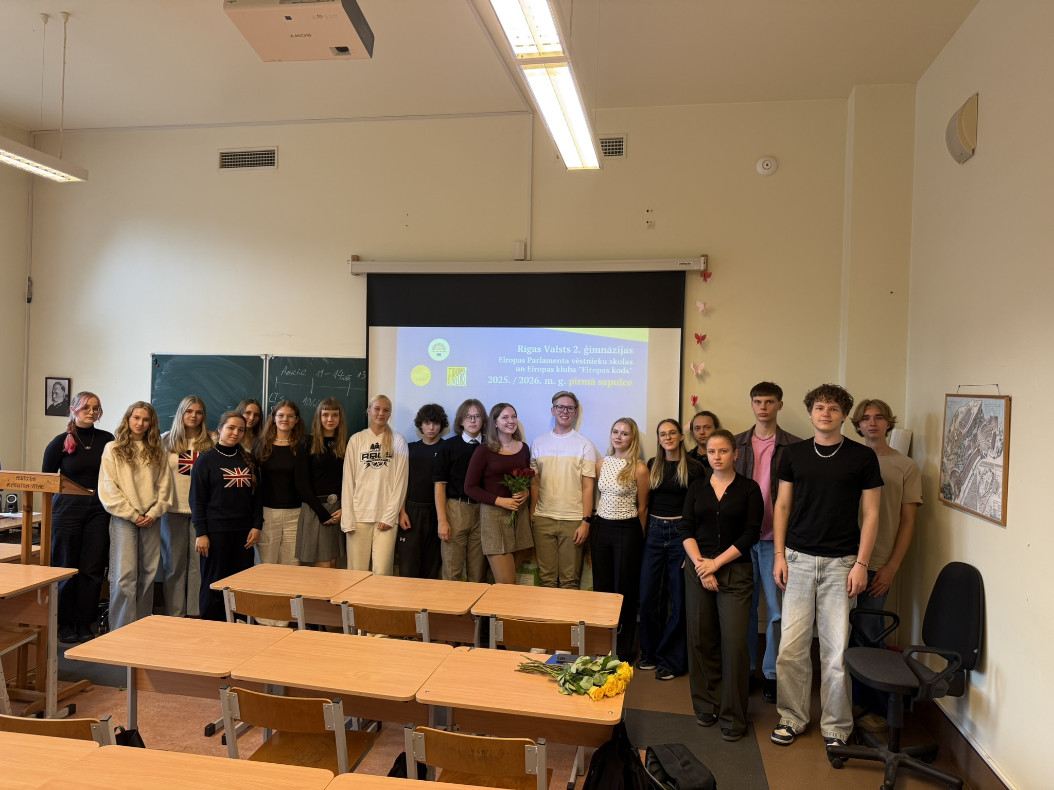 Eiropas Parlamenta Vēstnieku skolas (EPVS) komanda Rīgas Valsts 2. ģimnāzijā ir uzsākusi savu darbību arī 2025./2026. mācību gadā.