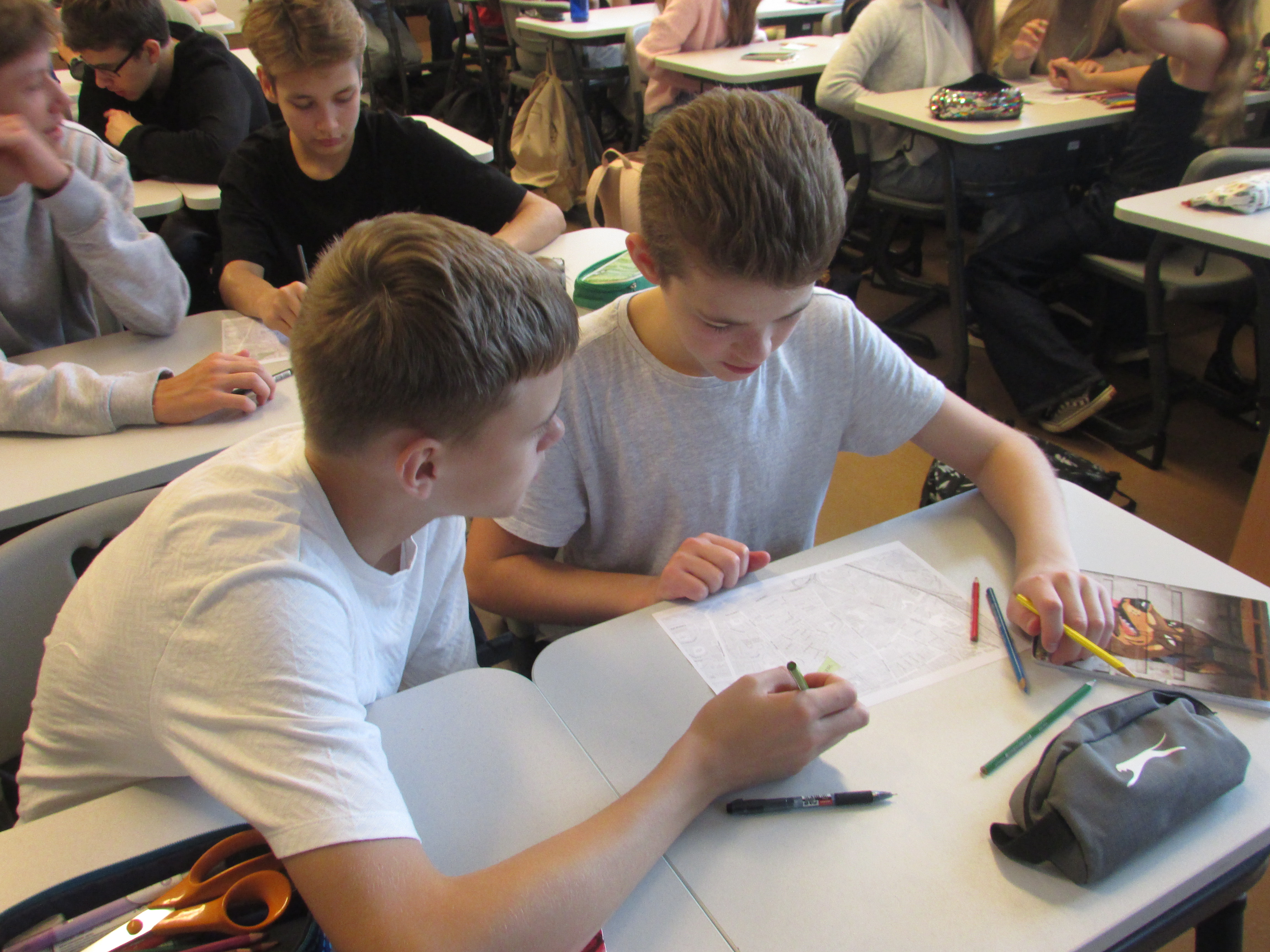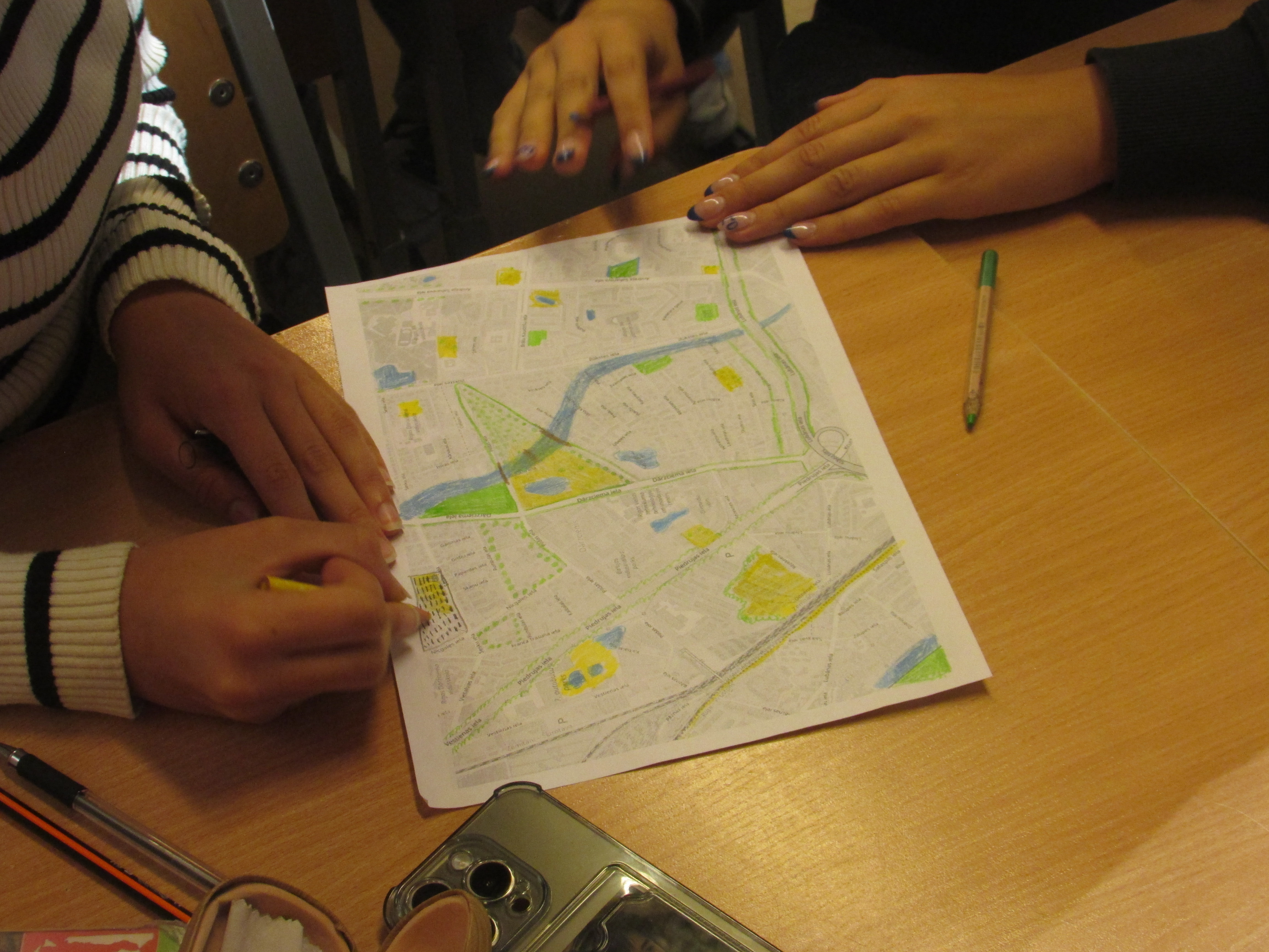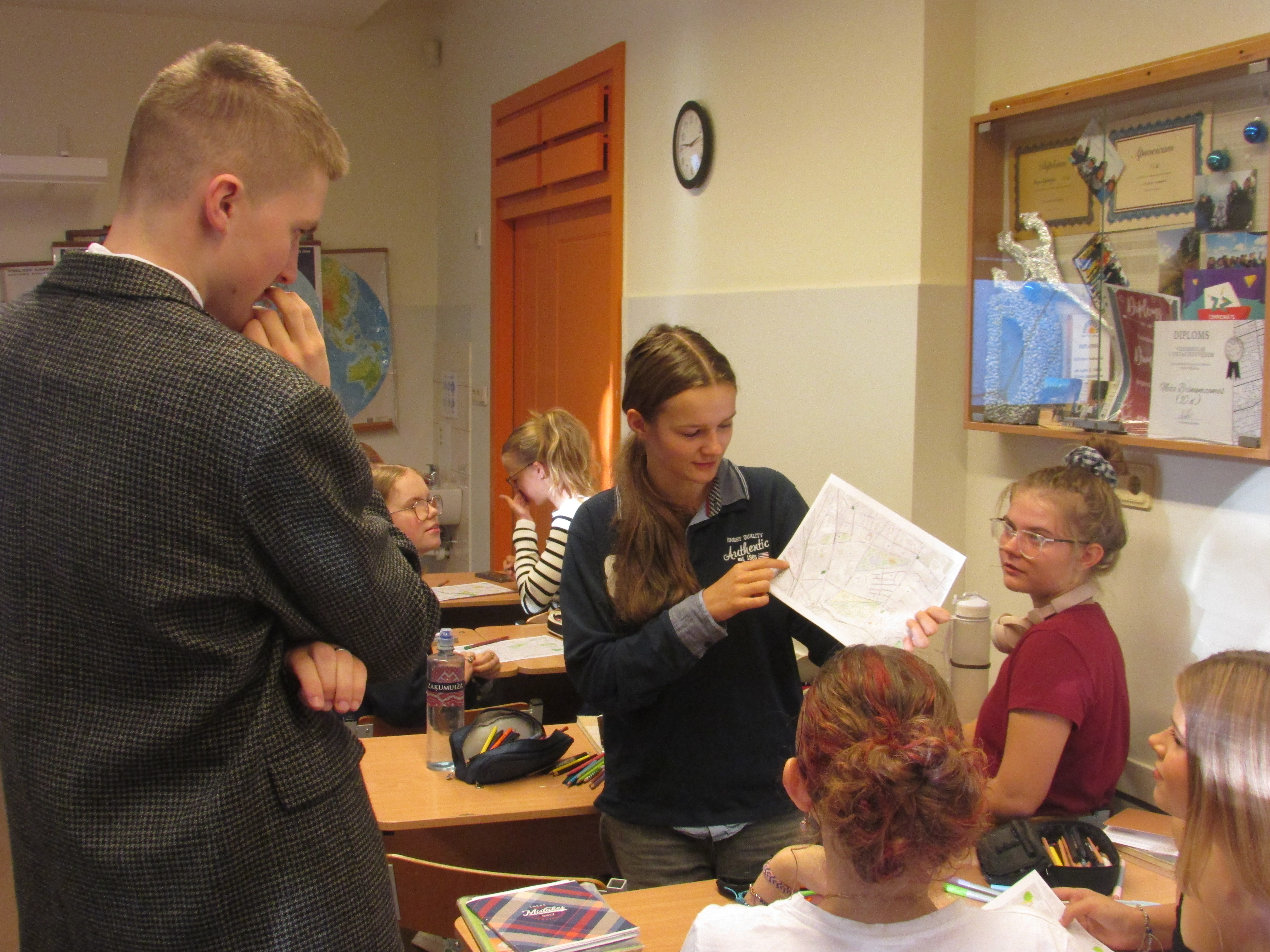 Savukārt stundas praktiskajā daļā skolēni strādāja ar kartēm, plānojot, kā varētu uzlabot dzīves kvalitāti Dārzciema apkaimē. Prieks par skolēnu ģeogrāfisko radošumu, piedāvājot būvēt lielveikalus, veloceļus, izmantot Saules paneļus, ieviest dzeramā ūdens krānus, stādīt kokus un krūmus, atjaunot degradētās teritorijas utt.