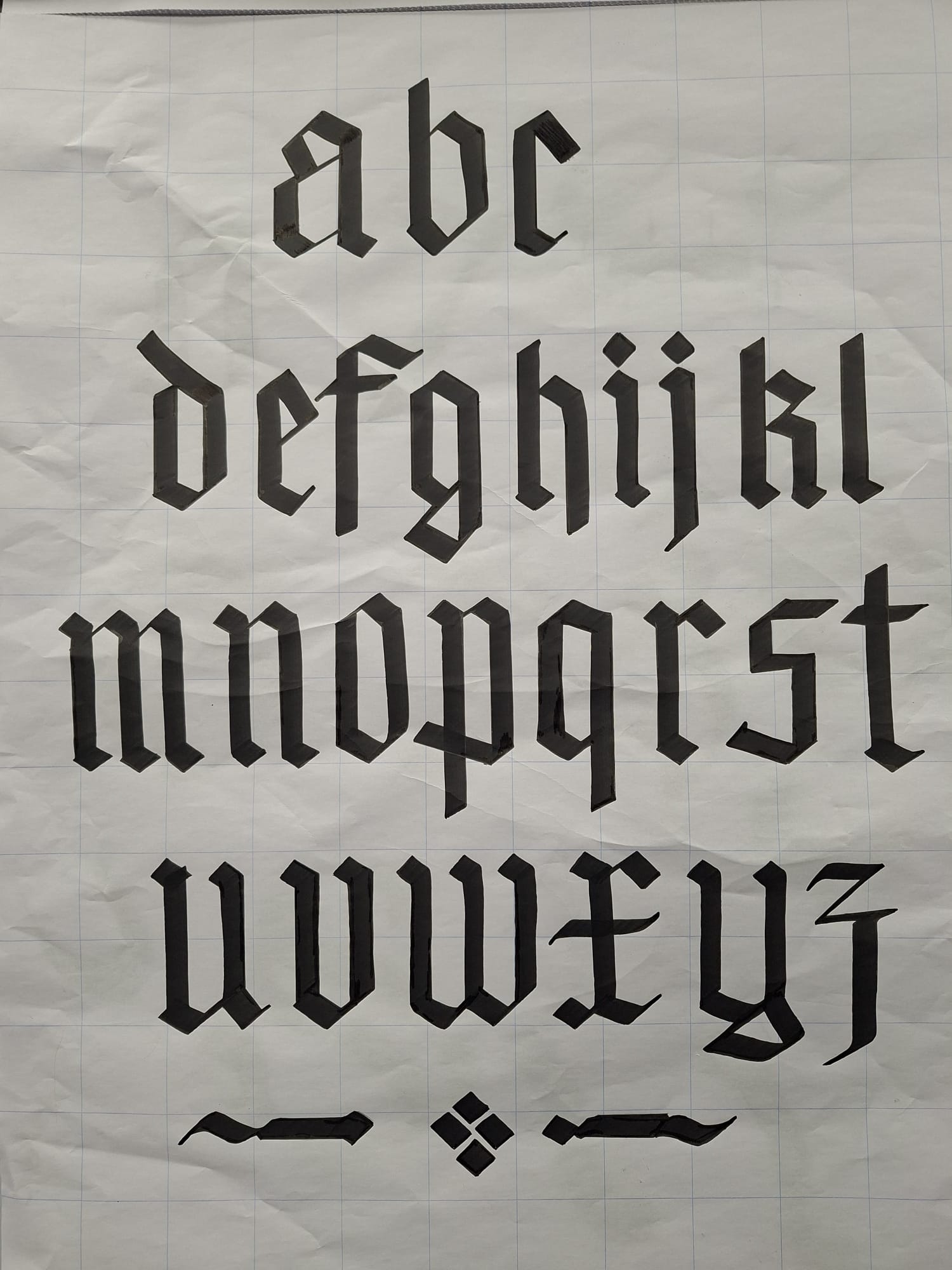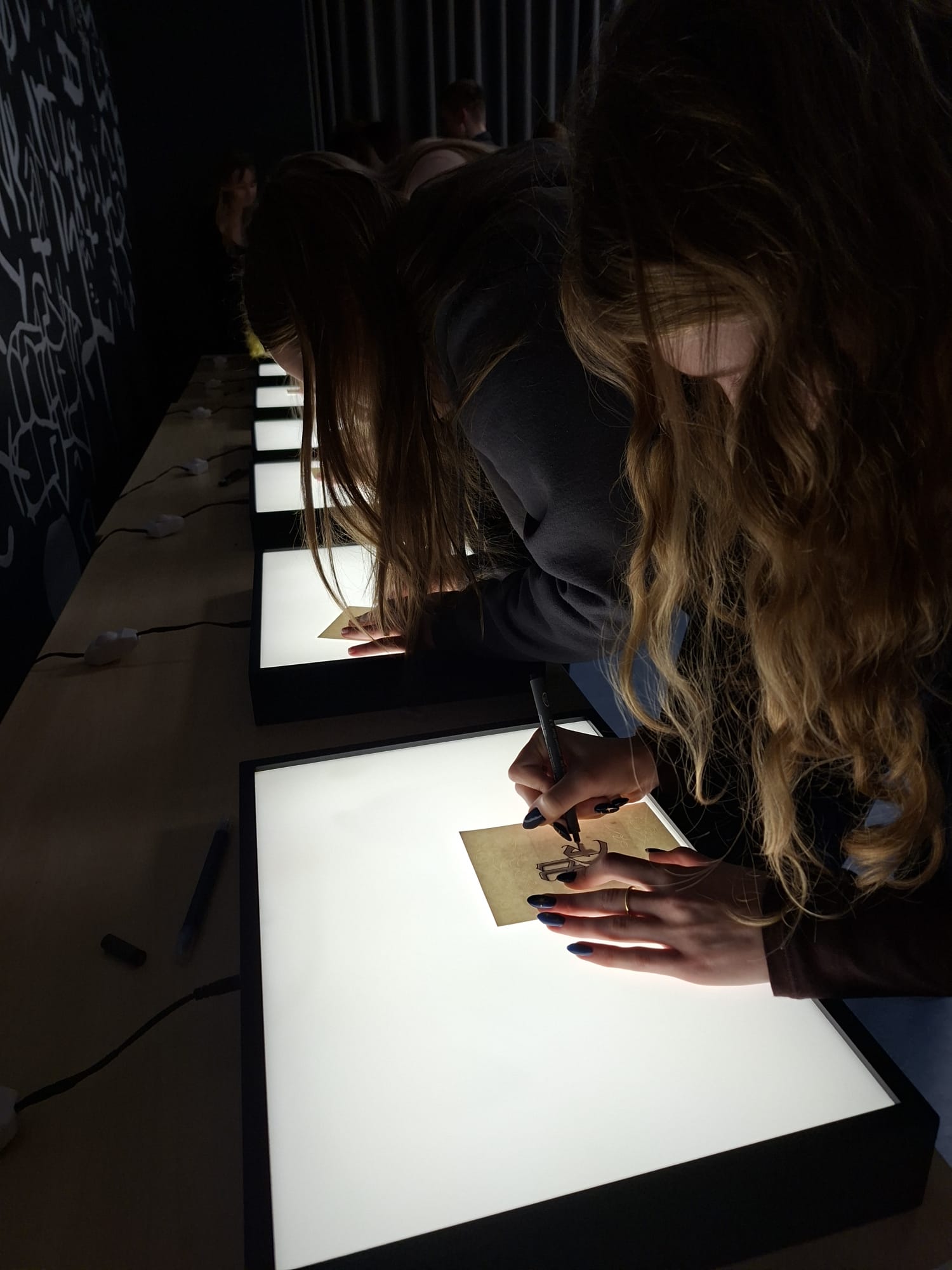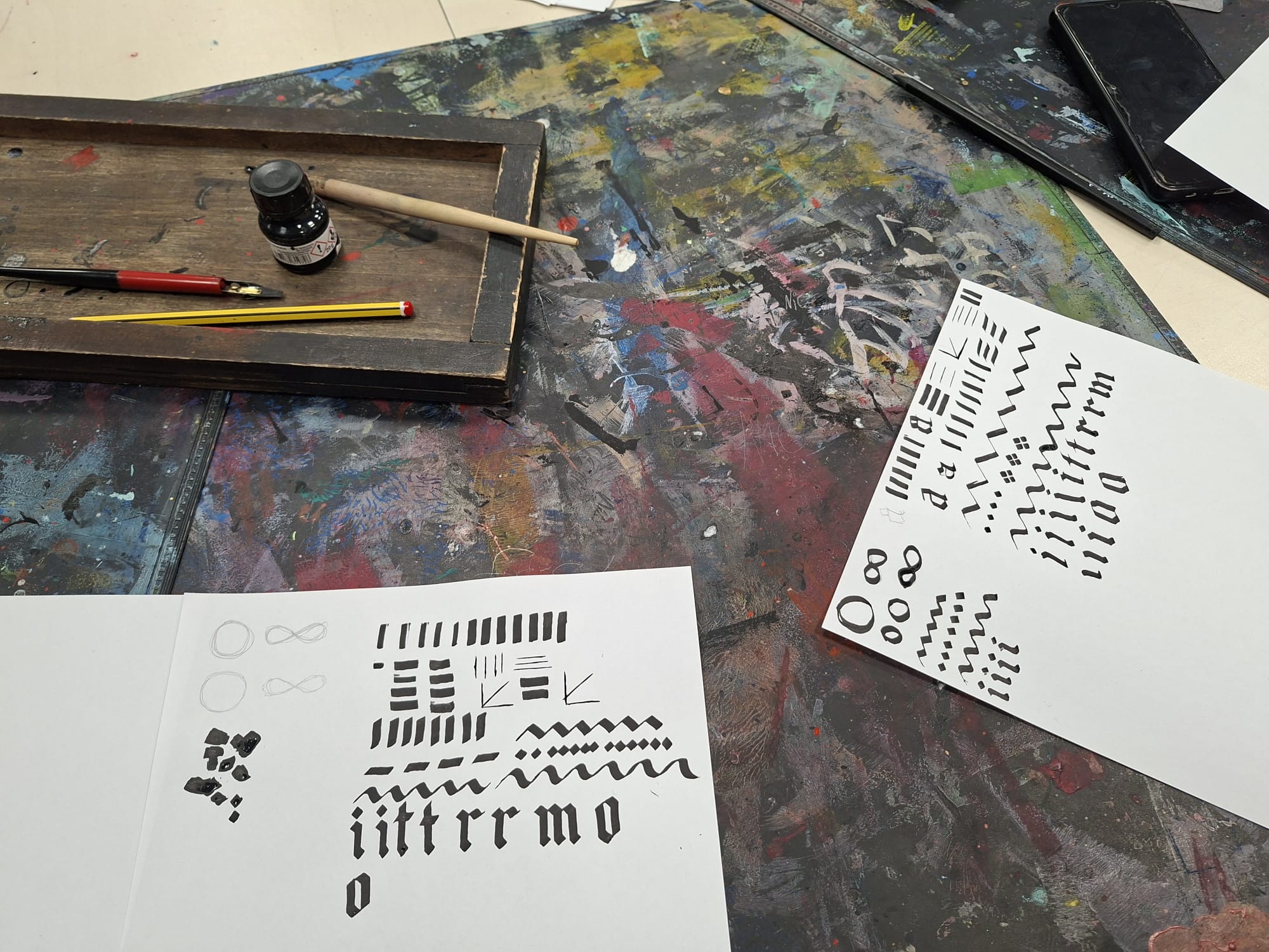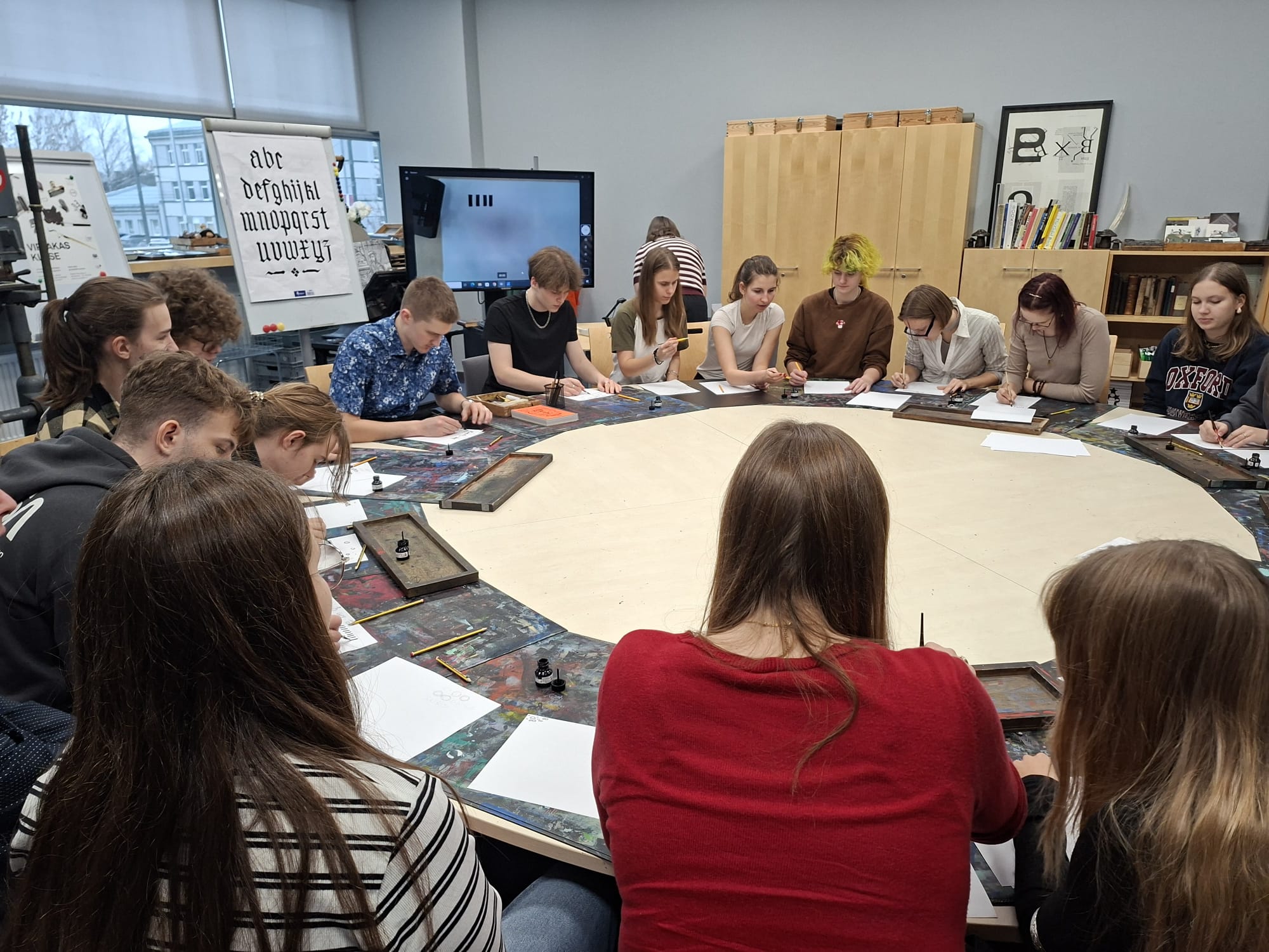 Šajā "Latvijas skolas soma" programmas nodarbībā skolēni iepazinās ar kaligrāfijas un gotiskā raksta vēsturi, kā arī izzināja, kādi instrumenti un materiāli izmantoti šajā mākslā dažādos vēstures posmos. Skolēni apguva monogrammas dizaina pamatprincipus, praktiski darbojās ar tinti un spalvaskātu, izmēģināja gotiskās kaligrāfijas burtveidošanas tehniku.