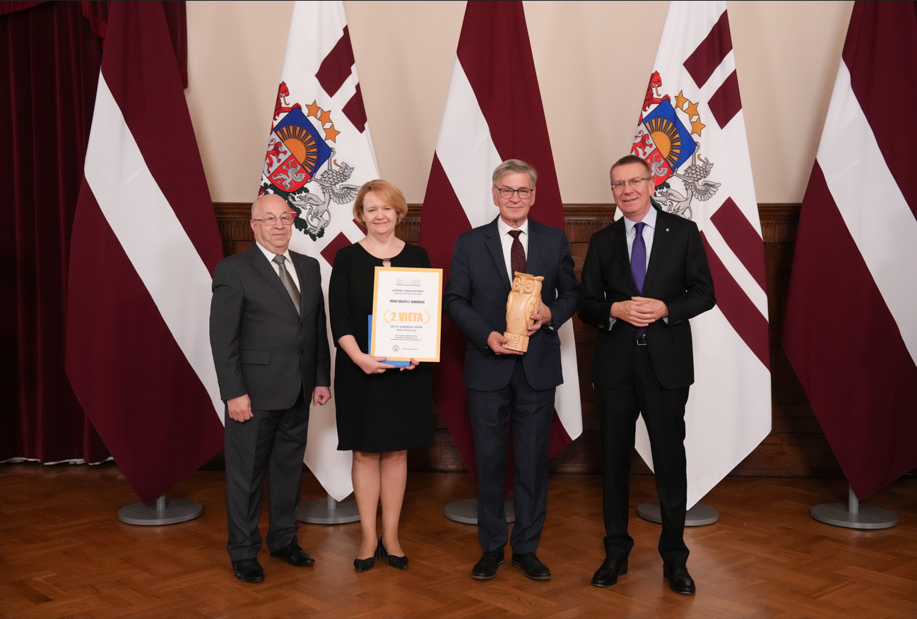 Nodibinājuma Ata Kronvalda fonda publicētajā Latvijas skolu reitingā Rīgas Valsts 2. ģimnāzija 2024./2025. m.g. guvusi augsto 2. vietu un vērtējumu – 87,67 balles, atgūstot pagājušā gadā zaudēto pozīciju un šogad piekāpjoties vienīgi Rīgas Valsts 1. ģimnāzijai. Rīgas Valsts 2. ģimnāzija saņēmusi arī ceļojošo balvu "Mazā Pūce", kas tiek piešķirta par ilgstošu un sistemātisku veikumu darbā ar talantīgajiem skolēniem.Foto: Ilmārs Znotiņš, Valsts prezidenta kanceleja