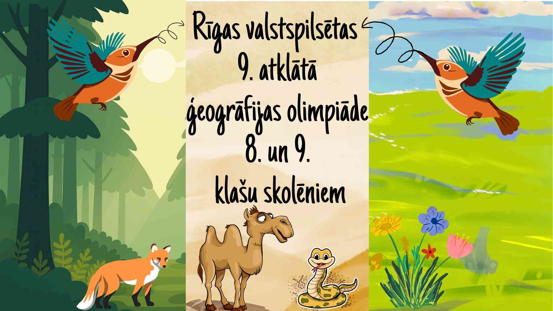 Šajā gadā olimpiādes tēma bija biosfēra un dzīvās dabas ģeogrāfija. Skolēniem bija jāstrādā ar klimatogrammām, jāatpazīst mākslīgā intelekta radītās biomu bildes, jāatbild uz jautājumiem par taigu, jāzina, kāpēc savannā neaug koki, kurā gadalaikā līst subekvatoriālajā klimata joslā, jāorientējas zooģeogrāfisko rajonu kartē, jāzina, kas ir Vollesa līnija, jāorientējas starptautiskajās konvencijās par dabas un vides aizsardzību, jāatpazīst dažādi augi un dzīvnieki, jāatbild uz jautājumiem par Āfrikas nacionālajiem parkiem un jāizzina augstumjoslojuma noslēpumi.
